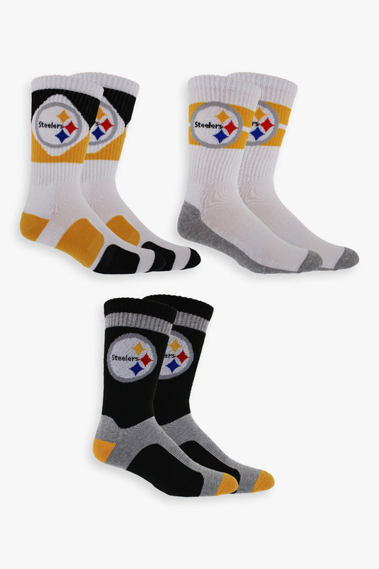 Men's NFL Pittsburgh Steelers 3-Pack Sport Crew Fan Socks
