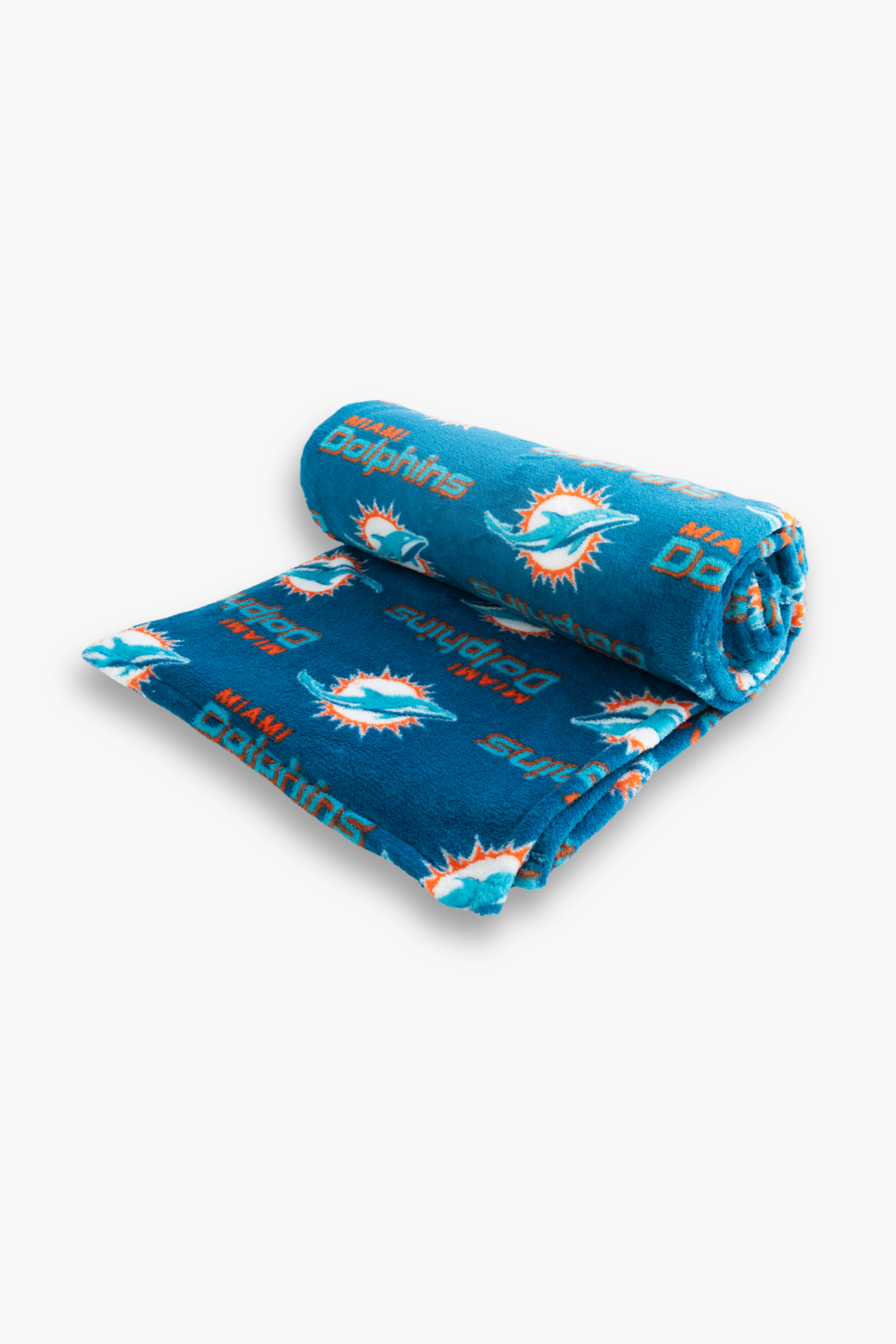 NFL Miami Dolphins Coral Fleece Softie Travel Throw Blanket with Team Logos
