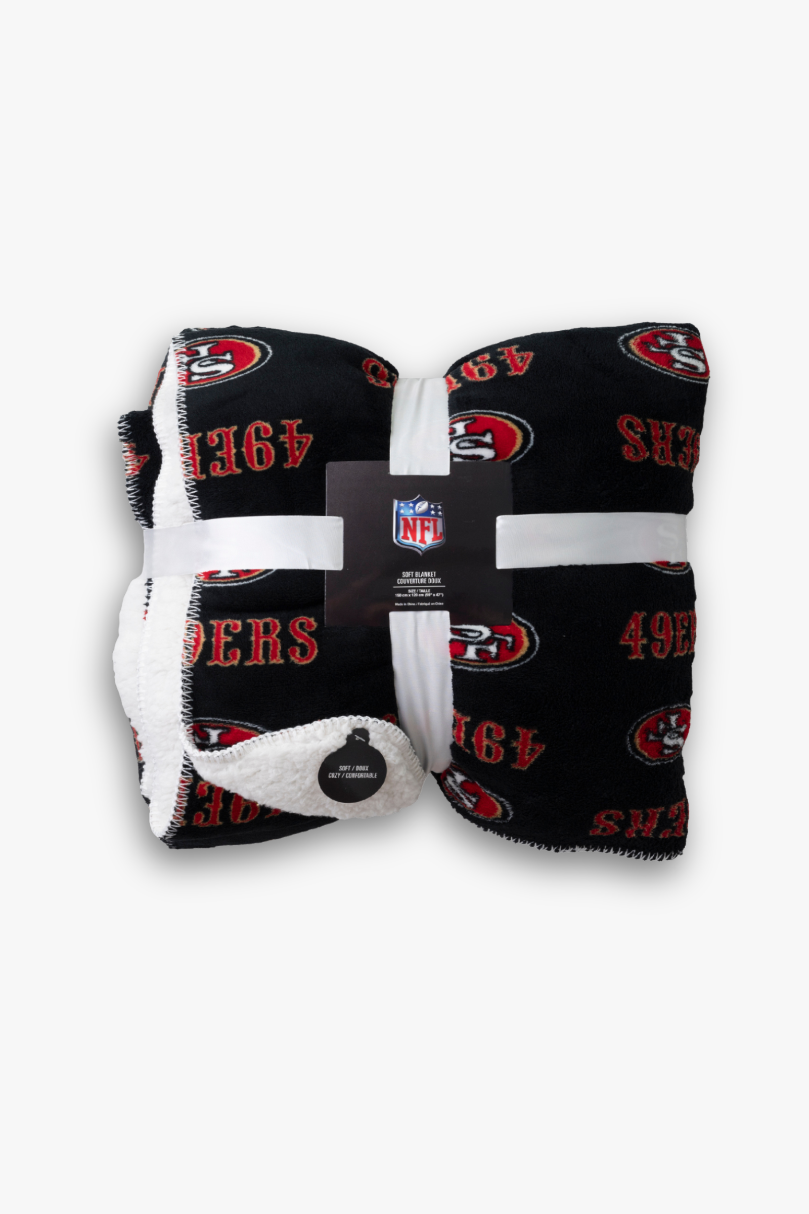 NFL San Francisco 49ers Faux Shearling Sherpa Lined Blanket with Soft Coral Fleece | 120cm x 150cm