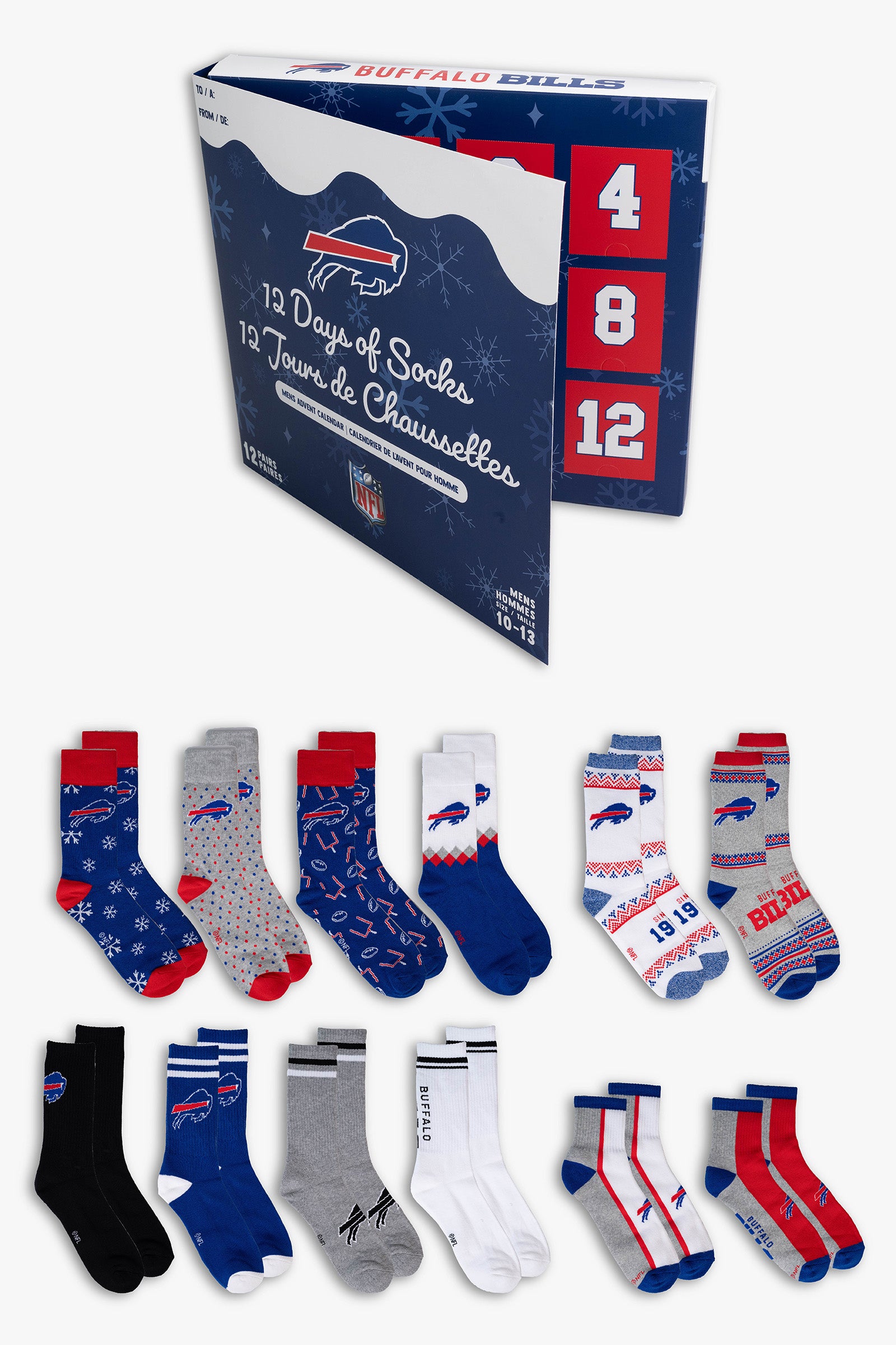- THE PERFECT FOOTBALL FAN GIFT: Score a touchdown this holiday season with the ultimate Buffalo Bills fan gift! This festive advent calendar is packed with 12 unique, officially licensed pairs of socks—perfect for counting down to the big game or Christmas Day!