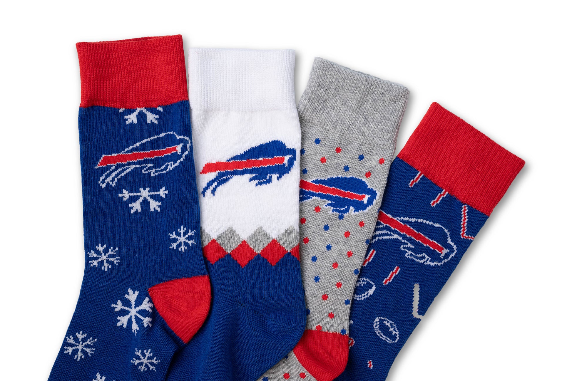 - A DAILY DOSE OF BILLS PRIDE: Unbox a new surprise every day! This collection includes a variety of styles to match any mood or outfit: sporty athletic crew socks for game day, classy dress socks for the office, and cushioned quarters for a comfortable, casual look.
