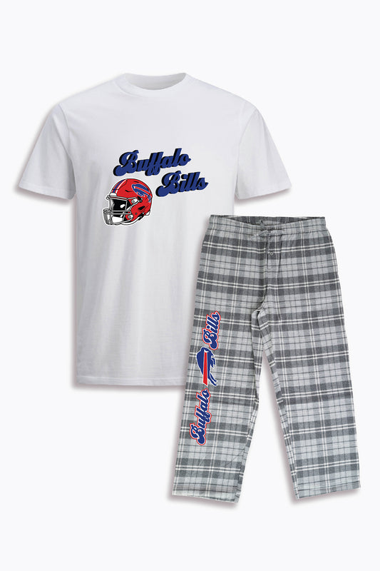 NFL Unisex Adult Pajama Set with Soft White Cotton T-Shirt & Light Grey Brushed Flannel Pants