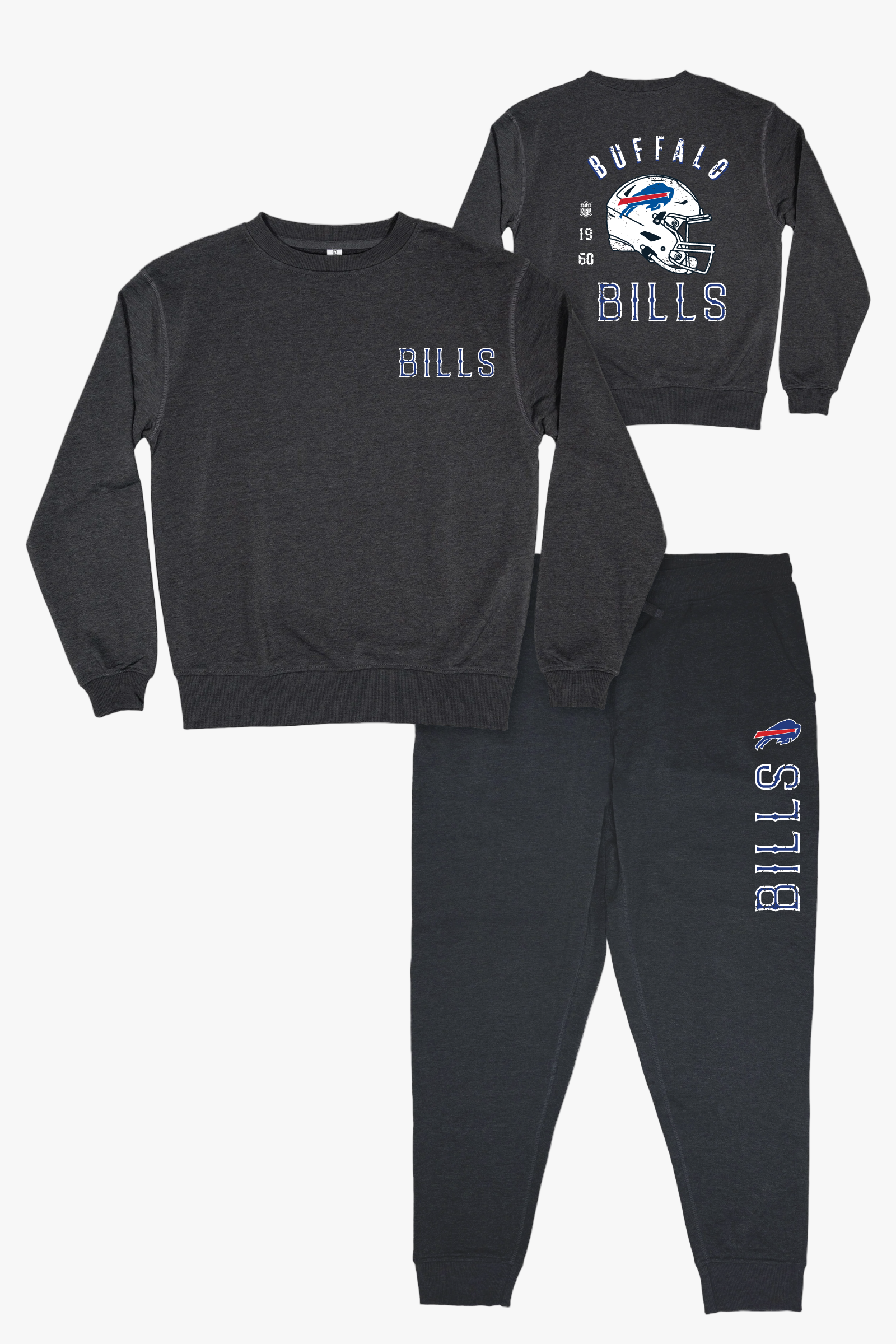 NFL Buffalo Bills Unisex Adult Adult Dark Grey French Terry Lounge Set With Vintage Helmet Design