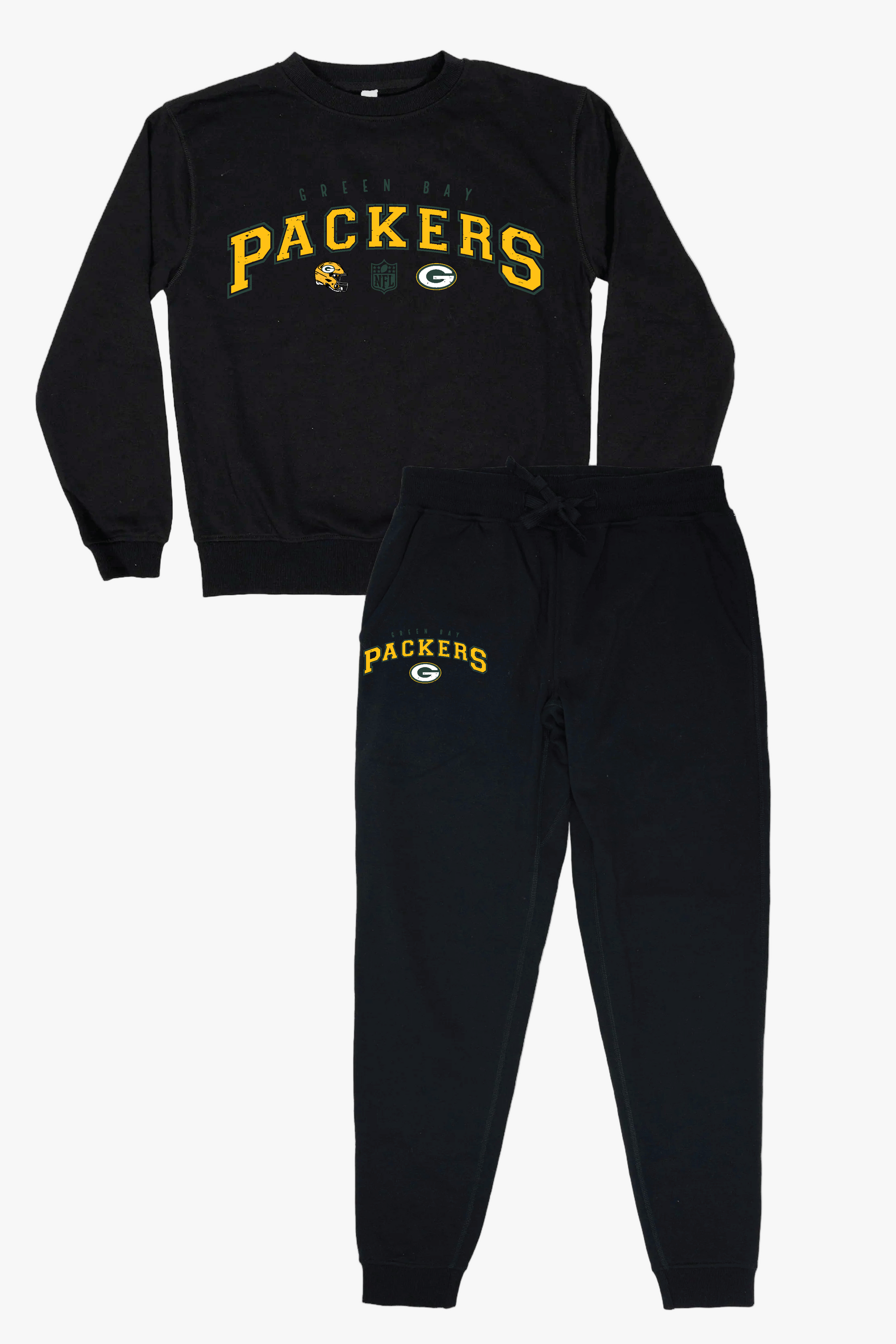 NFL Green Bay Packers Unisex Adult Black Distressed Vintage Varsity Lounge Set